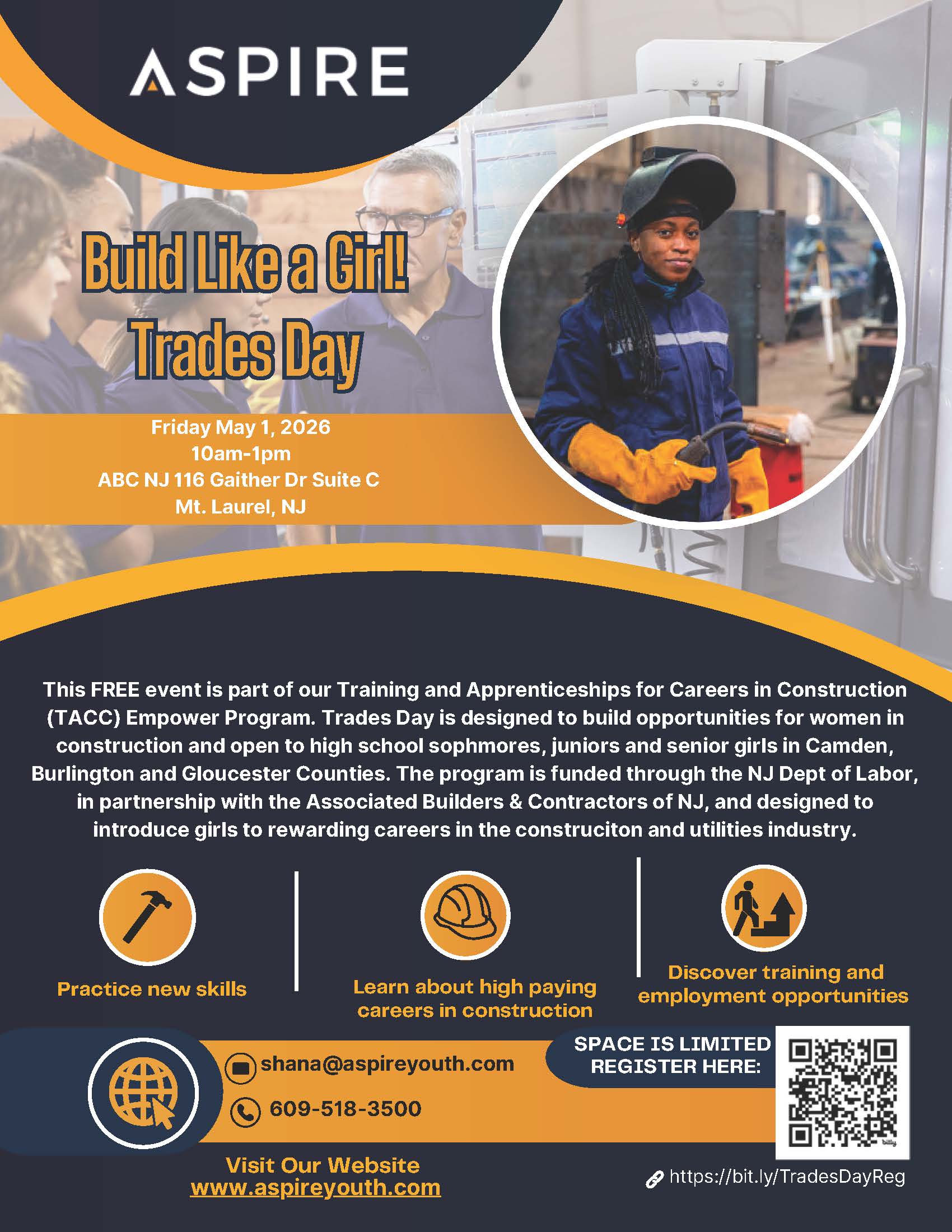 Help build the next generation of skilled trades professionals. Contact Tiffany Chamberlain at Tiffany@aspireyouth.com or 609-968-3796